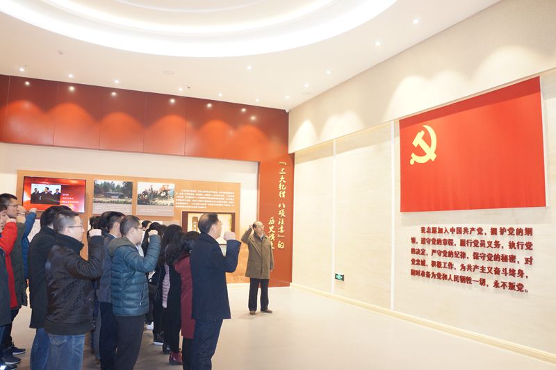 参观期间大家认真聆听讲解员介绍,不时在廉政展板前观看、品读,细细感受前辈先贤的高风亮节、廉语廉行,感受党一以贯之的政治追求和从严治党的坚定决心。参观结束时,由任丰金同志领誓,大家面对党旗庄严宣誓,重温了入党誓词。