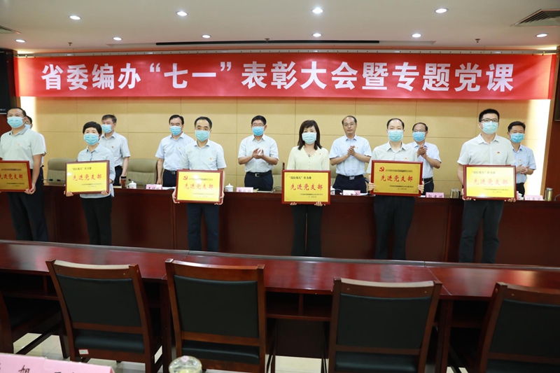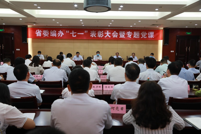为庆祝中国共产党建党99周年,6月29日,省委编办召开庆“七一”表彰大会暨专题党课,对2019年度先进党支部、优秀共产党员、优秀党务工作者以及“学习强国”学习标兵、“岗位练兵”拉力赛先进党支部和先进个人进行表彰,省委编办(省直管办)主任胡战坤同志围绕强化“组织口”意识、对标“组织口”标准、培育“组织口”作风,为全办党员干部讲专题党课。办领导班子成员及全体党员干部参加会议。