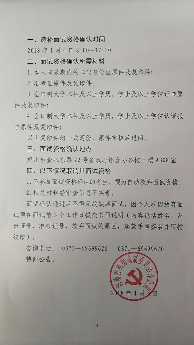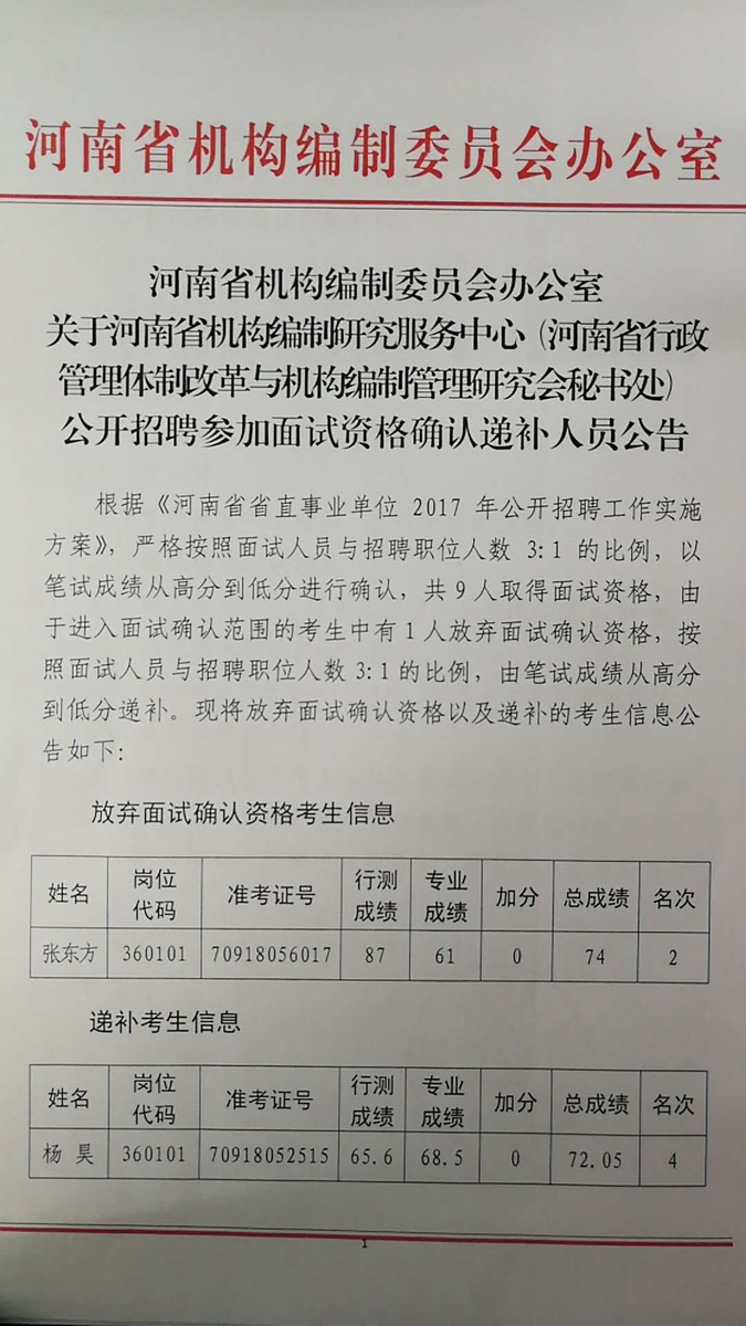 关于河南省机构编制研究服务中心(河南省行政管理体制改革与机构编制管理研究会秘书处)公开招聘参加面试资格确认递补人员公告